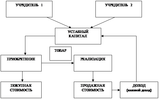 Если организация не имеет своей продукции, то есть занимается куплей – продажей товаров, процесс формирования доходов организации видоизменяется. В этом случае часть собственного капитала будет инвестироваться не на производство, а на приобретение товаров [22, с.101].