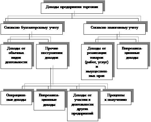 Рис.1.2. Состав доходов предприятия торговли в соответствии с бухгалтерским и налоговым учетом .
