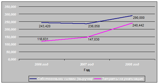 За 2007 г. по сравнению с 2006 г. выручка от реализации снизилась на 7,362 млн. р. Однако, в 2008 г. по сравнению с 2007 г. выручка выросла на 53,942 млн. р. или на 22,851%.