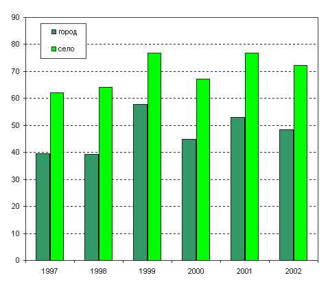 Концептуальные различия в определении распространения бедности не исчерпываются различными подходами к установлению черты бедности. Другим источником значительных расхождений является выбор показателя, соотносимого с чертой бедности. Как правило, используется показатель денежных доходов домашних хозяйств; в отдельных случаях - денежных расходов домашних хозяйств, а иногда и показатель располагаемых материальных ресурсов домохозяйств.