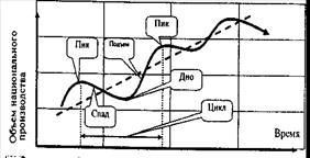 Рыночная экономика развивается циклический. Экономический цикл образуют периодические колебания общей экономической активности. Экономический рост изменяется спадом производства, процветания — кризисом и депрессией. Циклические колебания являются синхронными, происходят с постоянной последовательностью в четко очерченных временных границах.