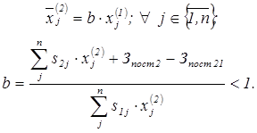 гарантированная прибыль была бы максимальной. Если принять допущение, что прибыли предприятия пропорциональны объемам производства, а те в свою очередь пропорциональны выделенным ресурсам, то для решения поставленной задачи необходимо решить сформулированную матричную игру, т.е. определить цену игры
