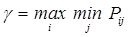 Так как в нашем случае равенство нижней и верхней цены игры, что соответствует наличию седловой точки в рассматриваемой матричной игре, цена игры (g)- гарантированный максимальный результат - определяется одной из чистых стратегий