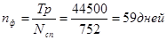 Где Тф – максимально возможный фонд рабочего времени в человеко-днях.