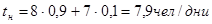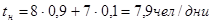 Средняя фактическая продолжительность рабочего дня (tф) определяется как отношение отработанных человеко-часов, включая человеко-часы внутреннего простоя и человеко-часы, отработанные сверхурочно, к сумме фактических человеко-дней.