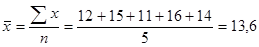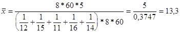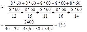 Например, рабочие заготовительного цеха были заняты переработкой сырья в течение 8-часового рабочего дня. Первый рабочий затратил на выпуск продукции 12 мин, второй - 15 мин., третий - 11, четвертый - 16 и пятый - 14 мин. Определите среднее время, необходимое на выпуск продукции.
