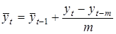 У наведеній формулі перший елемент характеризує інерцію розвитку, другий — адаптує середню до нових умов. Таким чином середня
