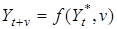 За даними ретроспекції моделюється закономірність динаміки і на основі моделі розраховується прогноз Yp+v , де v — період упередження. Ретроспекція послідовно змінюється, відповідно змінюється прогнозний період, що унаочнює рис. 1.1 (для v = 1 ).