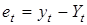 Оскільки фактичні значення прогнозного періоду відомі, то можна визначити похибку прогнозу як різницю фактичного уt і прогнозного Yt рівнів: et = yt – Yt . Всього буде n —р похибок. Узагальнюючою оцінкою точності прогнозу слугує середня похибка:
