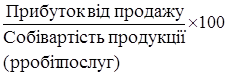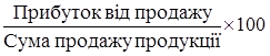 = Валовий прибуток × 100 /Обсяг реалізованої продукції.