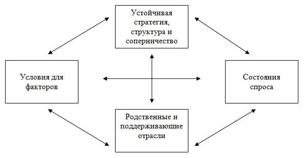 Понятие «кластер» по отношению к отраслям и компаниям было введено в научный оборот американским экономистом М. Портером в 1990 г. в рамках его концепции ромба национальных конкурентных преимуществ, которая является наиболее известной среди всех исследований о национальной и региональной конкурентоспособности (см. Приложение 1).