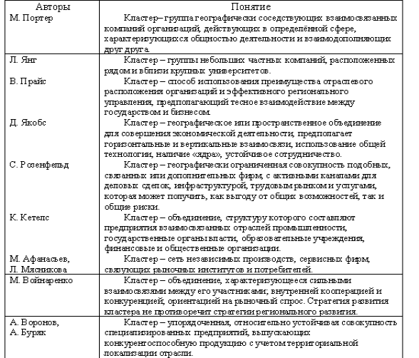 1 Экономические кластеры: понятие, виды, условия возникновения и функционирования