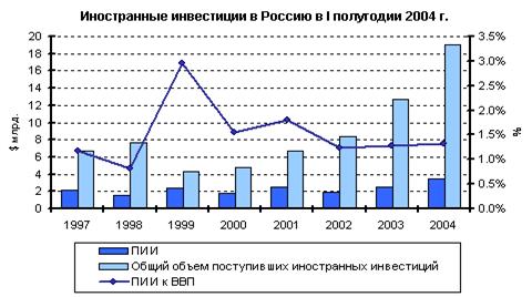 [28] Иностранные инвестиции в экономику России в I полугодии 2004 г. // Вестник Русского экономического общества. – 2004. - №137.