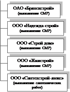 Подрядные работы - это работы, выполняемые подрядчиком, в состав которых входят строительные, монтажные работы, работы по ремонту зданий и сооружений, а также другие виды работ согласно договору на строительство. Одновременно с этим из практики заключения договоров на строительство при реализации строительного проекта принято организацию, которой поручено выполнение основных строительно-монтажных работ (СМР) или строительство в целом и предоставлено право привлекать прочие строительные организации для реализации возложенных на нее функций, а также несущую ответственность за строительство в целом, именовать генподрядчиком. Согласно ст.706 Гражданского кодекса Российской Федерации (далее - ГК РФ) предусмотрено право подрядчика привлечь к исполнению своих обязательств других лиц (субподрядчиков). В этом случае подрядчик выступает в роли генерального подрядчика.[6]