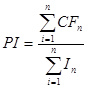 PI = (CF/(1+r)+CF/(1+r)2 +CF/(1+r)3 )/ I