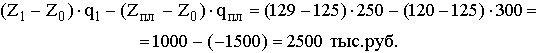 (в нашем примере (129-125)×250=1 000 тыс. руб.).