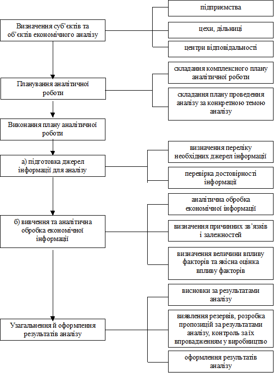 Основна мета економічного аналізу, як відомо, - це пошук можливостей (резервів) підвищення ефективності виробництва на основі вивчення передових досягнень науки та практики, структури ринку, а також детального вивчення попиту й пропозиції на продукцію підприємства. Для її досягнення економічний аналіз, який здійснюється на підприємстві, вирішує задачі, які можуть бути й етапами аналізу, а саме: