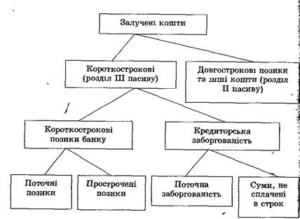 Аналіз джерел залучених коштів е особливо відповідальною справою. Потрібно з'ясувати необхідність їх залучення, структуру джерел та ефективність їх використання. Всі джерела надходження цих коштів наведено на рис. 12.
