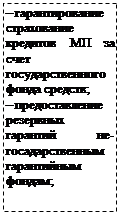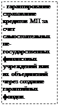 · активизация процесса образования и деятельности негосударственных гарантийных и страховых учреждений для обслуживания малого бизнеса по средствам образования ответственных мотивационных механизмов заинтересованности в этой деятельности и предоставлением льготных условий для их функционирования;