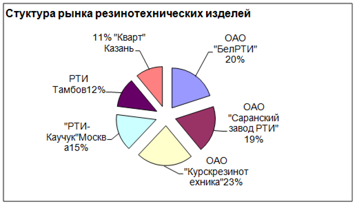 5. ОАО «Беларусьрезинотехника» на внутреннем рынке не имеет серьезной конкуренции. В основном жёсткую конкуренцию предприятие несёт по ценовому фактору, так, как цены конкурентов несколько ниже наших. Из проведённого нами анализа по некоторым видам выпускаемой продукции на предприятии можно сделать вывод о том, что продукция является конкурентоспособной за исключением манжеты. Наши сильные стороны: большая доля рынка, сложная конфигурация продукции. Слабые стороны дорогие ресурсы, продвижение; отсутствие поддерживающих кредитов. Большую роль играет имидж предприятия ОАО «Белорусьрезинотехника»: постоянно участвует в выставках, ярмарках, есть свой сайт в Интернете, проводятся мероприятия по ФОСТИС.