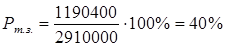 Стоимость товарной продукции составляет 3 608 400 рублей, а материальные затраты на рубль товарной продукции – 0,001 рублей. При этом затраты на рубль товарной продукции составило 0,8 рублей. Полная себестоимость товарной продукции будет равна 2 910 000 рублей. КИМ (коэффициент использования материала) равен 0,6.