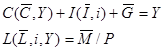 Кривая IS отражает все соотношения между Y и i, при которых товарный рынок находится в равновесии; кривая LM - все комбинации Y и i, которые обеспечивают равновесие денежного рынка.