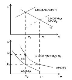 ), тем круче будет кривая совокупного спроса при данном уровне цен. В случае кривой LM