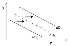Налоги. Уменьшение ставок подоходного налога влечет за собой увеличение чистого дохода и количества покупок при данном уровне цен. Это значит, что снижение налогов приведет к смещению кривой совокупного спроса вправо. С другой стороны, увеличение налогов вызовет уменьшение потребительских расходов и смещение кривой совокупного спроса влево.