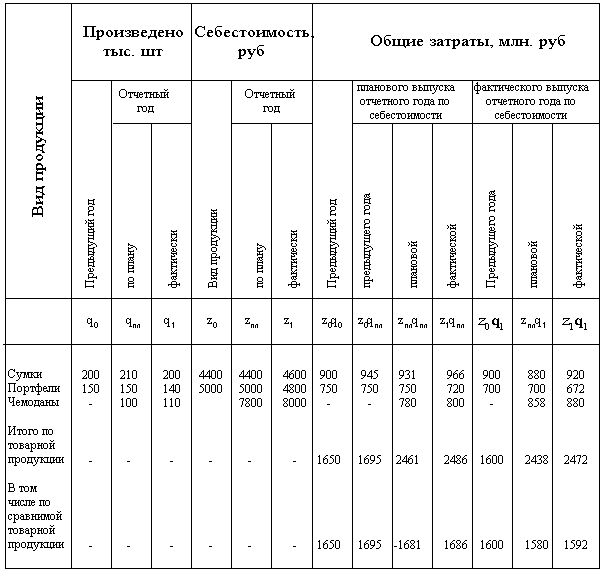 Для выявления экономии или перерасхода по статьям себестоимости промышленной продукции (или продукции других отраслей) используются данные отчетности об издержках товарной продукции по статьям калькуляции фактических и плановых данных. Отчетные и плановые калькуляции себестоимости единицы продукции составляются на готовые изделия и законченные виды работ.