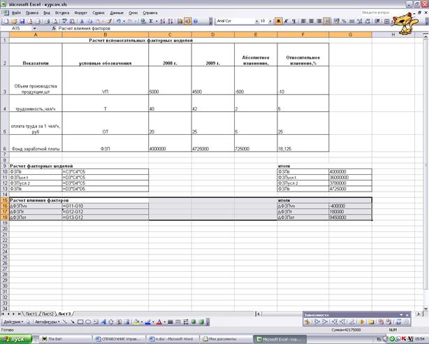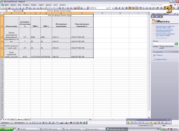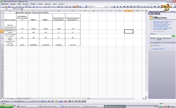 Статистические расчеты фонда заработной платы и ее динамики за счет отдельных факторов выполняем с применением пакета прикладных программ обработки электронных таблиц в среде MS EXCEL в среде Windows.