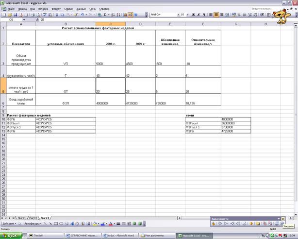 Краткое описание работы: Задачи статистики себестоимости продукции. Факторный анализ, его виды и задачи. Применение индексного факторного анализа для изучения затрат. Статистические методы изучения уровней динамики. Анализ фонда заработной платы, отображение расчетов в MS EXCEL.
