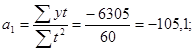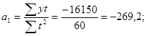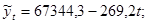 Экстраполируя для t = 7 ỹt = 67344,3-269,2*7=65459,9