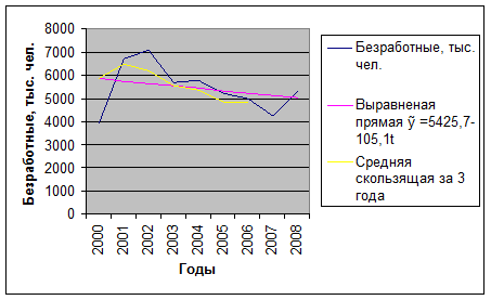 · Безработица за 2000-2008 г.г.ежегодно снижалась в среднем на 175,1 тыс. чел. или на 3,8%.