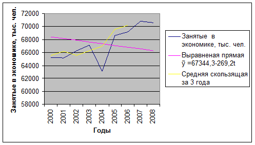 · Число занятых в экономике за 2000-2008 г.г.ежегодно вырастала в среднем на 666,25 тыс. чел. или на 1%.