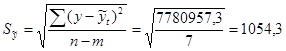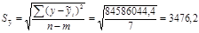 Значение t-критерия Стьюдента при уровне значимости α = 5% и числе степеней свободы n-m = 7. tα = 2,447