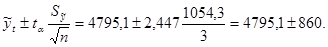 Интервальная оценка прогноза 62624,5≤ y2011 ≤68295,3