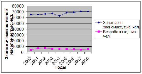 Рисунок 10- Динамика экономически активного населения в Российской Федерации за 2000-2008 г.г.