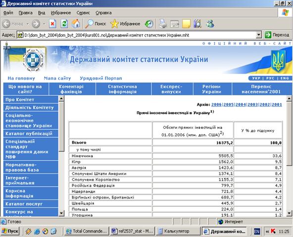 2.2 Первинні статистичні результати спостережень за рівнем прямих іноземних інвестицій в Україну у 2004 – 2006 роках