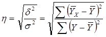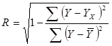 Показник R характеризує індекс кореляції або теоретичне кореляційне співвідношення; знаходиться в таких межах [0;1]: