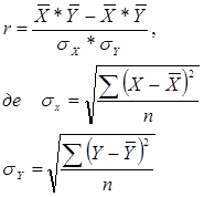 У випадку лінійної залежності тісноту зв'язку вимірюють лінійним коефіцієнтом кореляції, який знаходиться в межах [-1;1]: