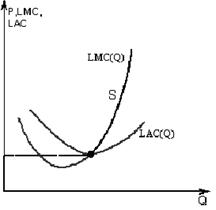 В краткосрочном периоде фирма продолжит производство даже в том случае, когда она не сможет получать прибыль, при условии, что цена окажется выше минимальных средних переменных издержек. В такой ситуации задачей фирмы станет минимизация убытков, возникших из-за снижения рыночной цены. В долгосрочном периоде решение фирмы об объеме выпуска продукции будет приниматься иначе, поскольку можно изменять все производственные факторы, в том числе и размеры предприятия.