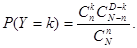 Отбор случайной выборки согласно описанным правилам организуют при проведении различных лотерей. Пусть Y —число дефектных единиц в случайной выборке, организованной таким образом. Известно, что тогда P (Y = k) – гипергеометрическое распределение, т.е.