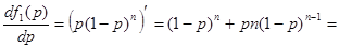 f(p) = Р(Х=0)+Р(Х=1) = (1—р)n + n (1—р)n-1 (6)