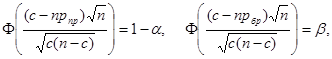 Одноступенчатые планы контроля (n,c) : отобрать выборку объема n ; если число дефектных единиц в выборке X не превосходит c , то партию принять, в противном случае забраковать. Число с называется приемочным.