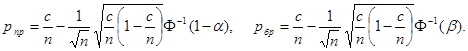 и риск потребителя (заказчика, системы экологического контроля)  , при этом границы между зонами задают два уровня дефектности - приемочный p