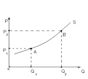 Рыночный спрос- это сумма индивидуальных спросов на все товары и услуги, предлагаемые на данном товарном рынке. Двигаясь по кривой предложения от точки А к точке В обнаруживается рост объема предложения товара от Q1 до Q2.