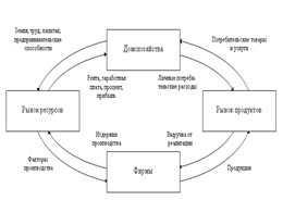 | 8. Натуральное и товарное производство. Объективные условия возникновения рыночной организации хозяйства . Натуральное хозяйство – такое хозяйство, в котором продукты производятся для непосредственного потребления. Это означает, что производственные материальные блага переходят из производства в потребление минуя обмен. Под товарным хозяйством разумеется такая организация общественного хозяйства, когда продукты производятся отдельными производителями, каждый специализируется на выработке одного к.-либо продукта. Товар – это продукт труда, способный удовлетворять к.-либо человеческую потребность и произведенный для обмена. Разделение труда – это исторически определенная система общественного труда, склад-ся в результате качественной дифференциации трудовой деятельности в процессе развития общества, приводящий к обособлению и сосуществованию различных её видов. Существуют потоки товаров и услуг и потоки денег. Модель экономики, объясняющая это движение получила название диаграммы кругооборота потоков и доходов. Ее основное допущение состоит в том, что сущ. 2 типа принимающих решение субъектов: домашнее хозяйство и фирмы. Фирмы производят товары и услуги используя труд, землю и капитал, т.е. факторы производства. Домашнее хозяйство владеет факторами производства и потребляет все товары и услуги, произведенные фирмой. Т.о. денежные средства, расходуемые на приобретение товаров и услуг поступают от домашних хозяйств к фирмам. Денежный же доход в форме зарплаты, ренты и прибыли поступает от фирм к домашним хозяйствам. Инфраструктурой рыночных отношений наз. система организаций, которые обслуживают потоки товаров, услуг, денег. | 9.Природа и функции рынка. Преимущества и недостатки рыночной системы. Рынок как экономическая категория – это институт или механизм, сводящий вместе покупателей и продавцов. Для существования рыночного отношения необх. как минимум 2 субъекта, а именно производитель и потребитель. Функции рынка: а)согласование производства и потребностей в ассортиментном аспекте, поддержание сбалансированности спроса и предложения б)стимулирование эффективности производства, побуждающее товаропроизводителей создавать товары с наименьшими издержками в)побуждение потребителя соизмерять свой спрос с доходами, экономичность в потреблении г)обеспечение пропорциональности в товарообмене между различными регионами и национальными хозяйствами. Достоинства рын. системы: а)обеспечивает свободу выбора деятельности и ответственность за результат б)эффективно распределяет ресурсы на основе рационального ведения хозяйства в)обладает высокой чувствительностью к высоким технологиям г)создает систему побудительных мотивов и материальных стимулов хозяйственной деятельности. Недостатки рын. системы: а)представляет собой нестабильную систему, подверженную спадам и подъемам б)не гарантирует людям права на труд и доход, порождает экономическое и соц.неравенство в)не обеспечивает защиты окружающей среды д)ориентируется только на денежный доход. | ||