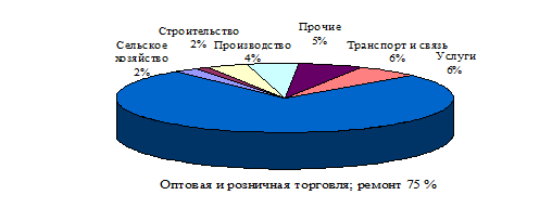 Диаграмма - Долевое распределение числа ИП в республике Татарстан по отраслям экономики за 9 месяцев 2007 г.