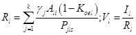 Заключительная процедура анализа - ранжирование рисков производится с использованием упоминавшегося выше показателя важности i -го риска Ω i , или так называемого коэффициента риска KFi , равного отношению максимально возможной величины потерь (Δ Fi > Ω i ) из-за данного риска к объему собственного капитала Ve владельца объекта KFi = Δ Fi / Ve . При этом общий коэффициент риска проекта KΩ может оцениваться как средневзвешенная величина коэффициентов всех видов риска, где весовыми коэффициентами являются вероятности проявления соответствующих типов риска общим числом m :