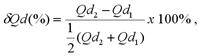 При измерении процентного изменения экономических величин обычный способ вычисления не применим, т. к. одинаковое количественное изменение в другом направлении дает иное процентное соотношение. Например, если величина спроса на товар составляла 10000 единиц, а затем уменьшилась на 2 500, то произошло изменение спроса на 25%. Однако увеличение спроса на данный товар с 7500 единиц до 10000 даст 33% увеличение спроса. Поэтому в экономической теории используют более универсальный метод, названный формулой средней точки Аллена. Тогда:
